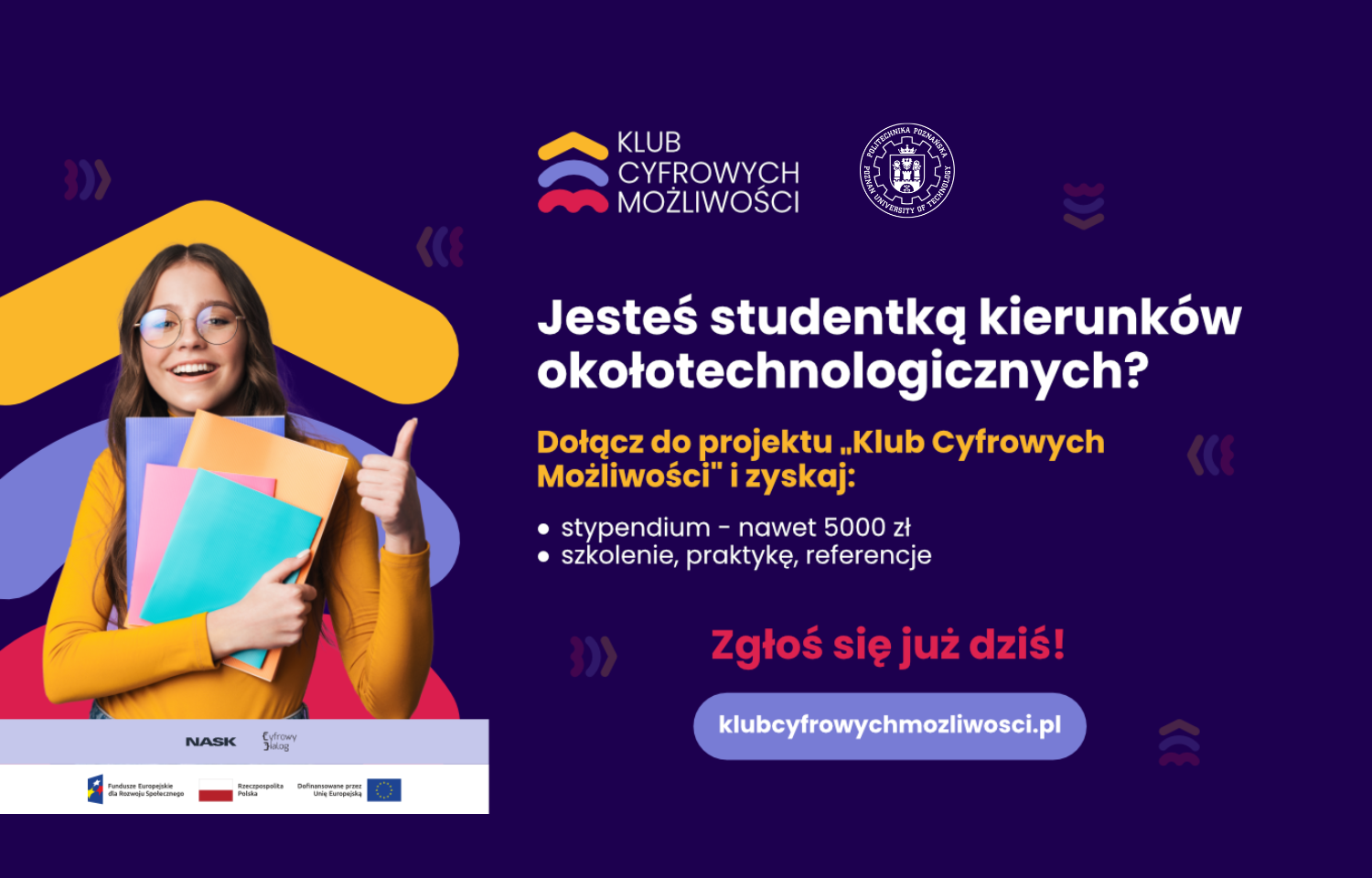 Czas to zmienić. Potrzebne jest jednak wsparcie – Wasze, studentek. Dlatego, zgłoście się do Klubu Cyfrowych Możliwości już dziś – wykorzystajcie swój potencjał i pomóżcie w tym innym!