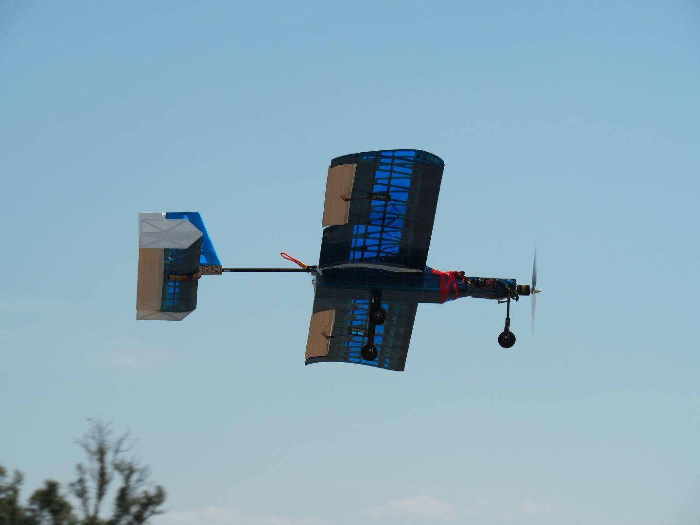 Poznański zespół zaprezentował bezzałogowy samolot o rozpiętości 200 cm i masie własnej 2,4 kg. Konstrukcja została wykonana w układzie kratownicowym ze sklejki o grubości 2 mm, pokrytej folią i wzmocnionej dźwigarami z włókna węglowego.