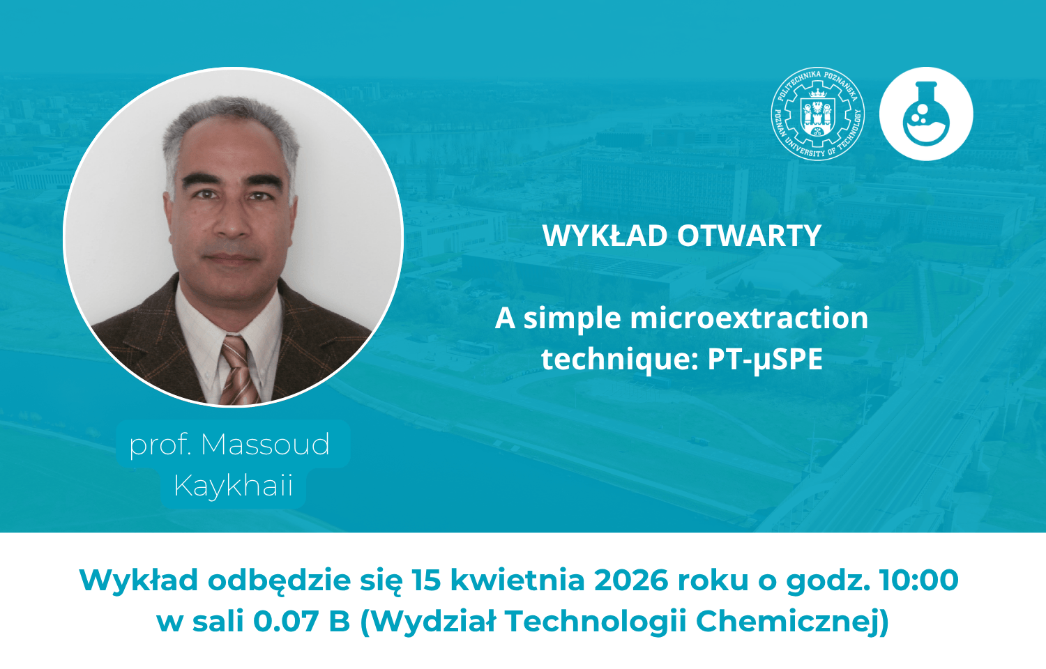 - Wykład otwarty: Prezentacja autorskiej techniki mikroekstrakcji do fazy stałej za pomocą pipety (PT-µSPE).